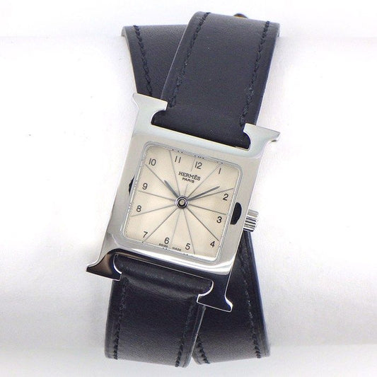 Hermes Watch H Watch Dubretour Hh1210 Square Silver Vague Guilloche Dial SS