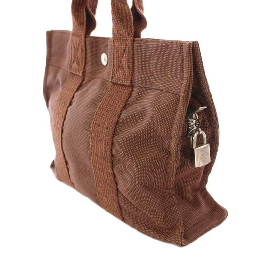 Hermes Her Line PM Tote Handbag Canvas Logo Brown BB - OH