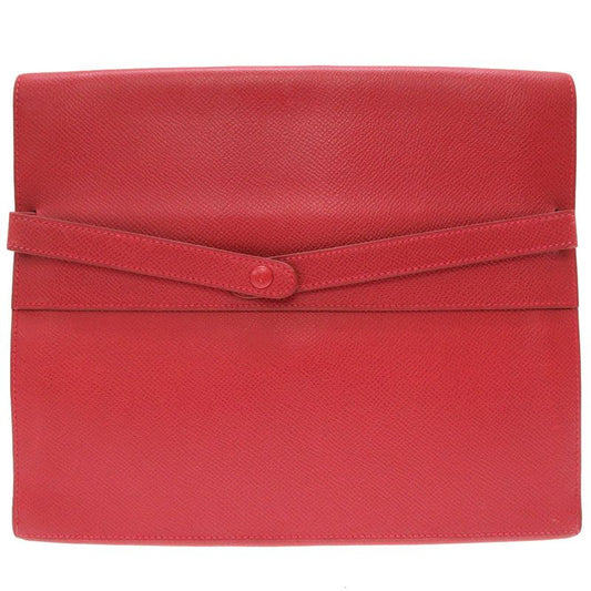 Hermes Courchevel Red Gold Hardware 00Z Engraved Vintage Clutch Bag 0225 Hermes