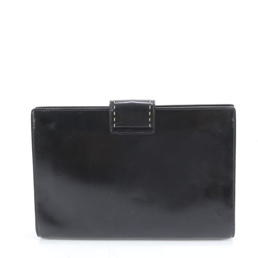 Celine Leather Second Bag Clutch Pouch Commuter Business Black Silver Hardware