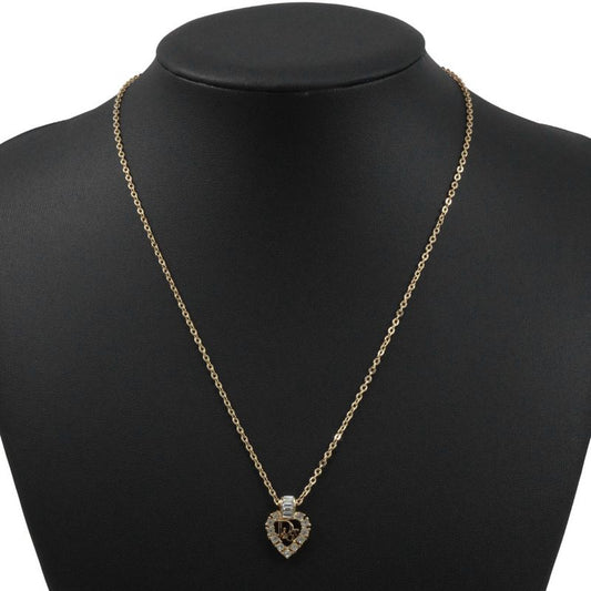 [dior] Christian Dior Logo Heart Gold Plated And Rhinestone Ladies 5.4g Necklace