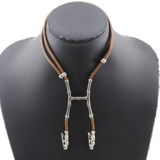 Hermes Bamboo Halter Leather X Metal Silver/brown Ladies 32g Necklace