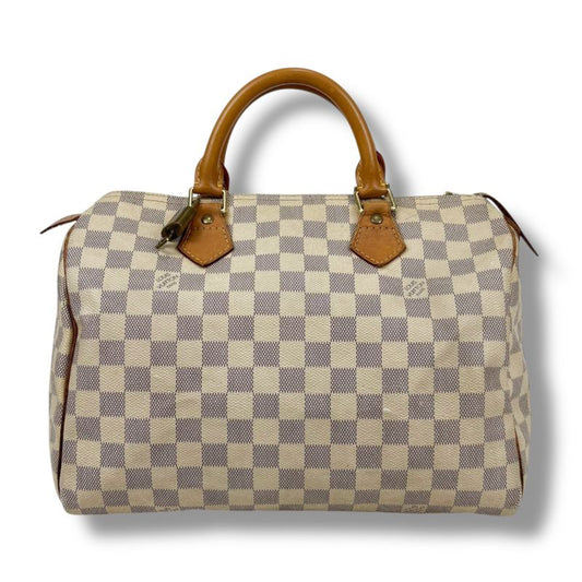 Louis Vuitton Damier Azure Speedy 30 Mini Boston Bag Handbag White Beige