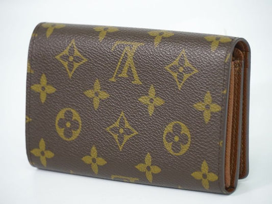 Authentic Louis Vuitton LV Porte Monet Vier Trésor Monogram Fold Wallet Brown