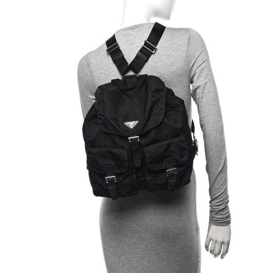 Prada Nylon Tessuto Backpack Saffiano Leather Shoulder Bag Purse Tote