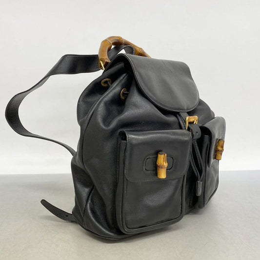 Gucci Backpack Daypack Bamboo 0030 2058 Leather Black Gold Hardware Women