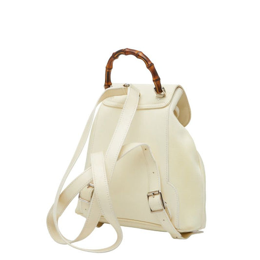 Gucci Bamboo Backpack 003 1705 0030 White Nylon Leather Women's Gucci