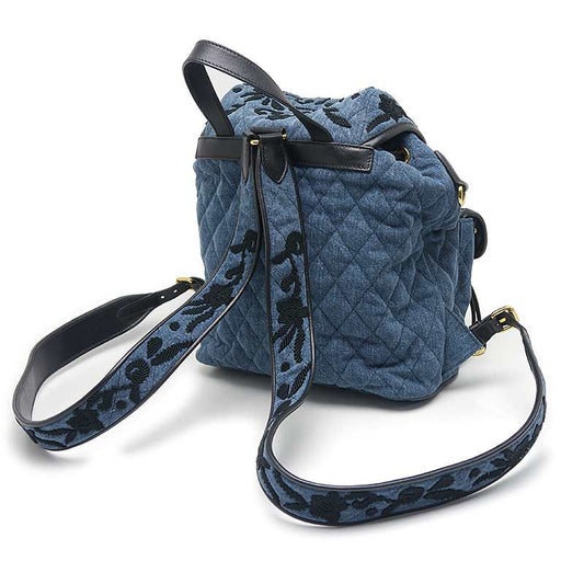 Prada Backpack 1bz677 Denim Quilted Embroidered *charm Missing