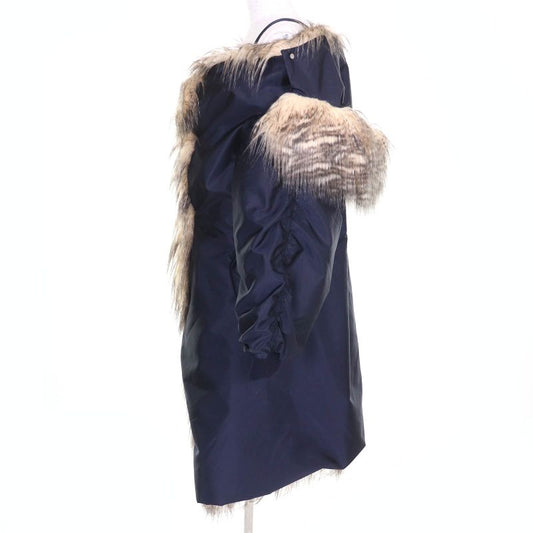 Prada 2021 29y995 With Triangle Logo Pouch Eco Fur Hooded Re-nylon Long Coat