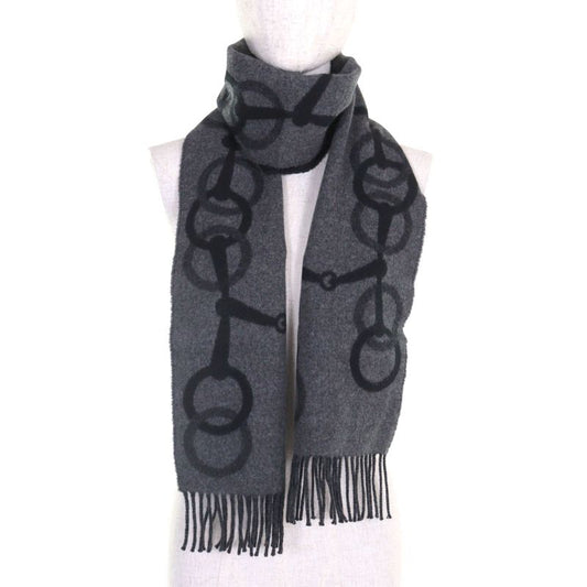 Hermes Enny Moll 100% Cashmere Flannel Gris Cine Cles Jacquard Weave Horse Bit