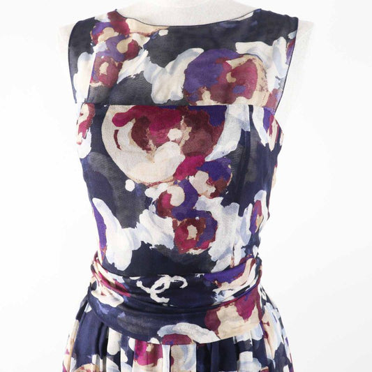 CHANEL P37299 100% Silk Coco Mark Camellia Partially Sheer Chiffon Fabric