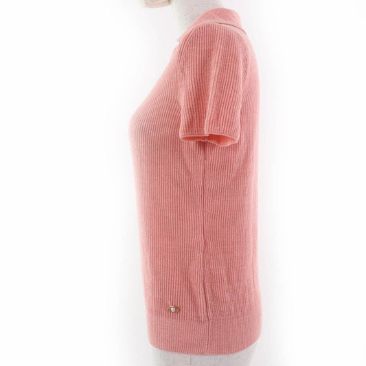 CHANEL 17P P56135k07344 Pearl Coco Mark Part Short Sleeves Knit Pink 40 Made In
