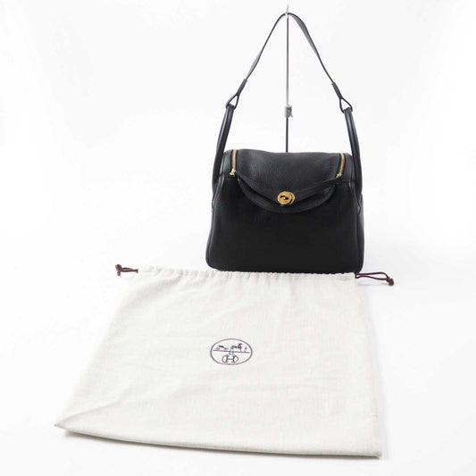 Hermes Lindy 30 Gold Hardware Taurillon Clemence Shoulder Bag Black B Engraved