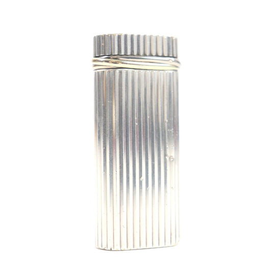 Cartier Godron Logo Engraved Oval Roller Lighter Silver Stripe