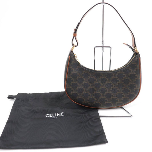 Celine 19395 Ava Triomphe One Shoulder Bag Coated Canvas Leather Handbag Brown
