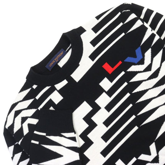 Louis Vuitton 24SS Hqn11w 100% Wool LV Fur Tree Logo Crew Neck Knit Black White