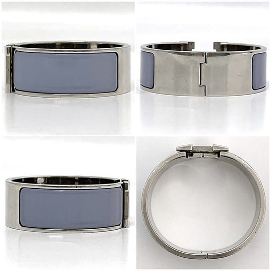 Hermes Bangle Click Clack Silver Light Blue Excellent Condition Metal