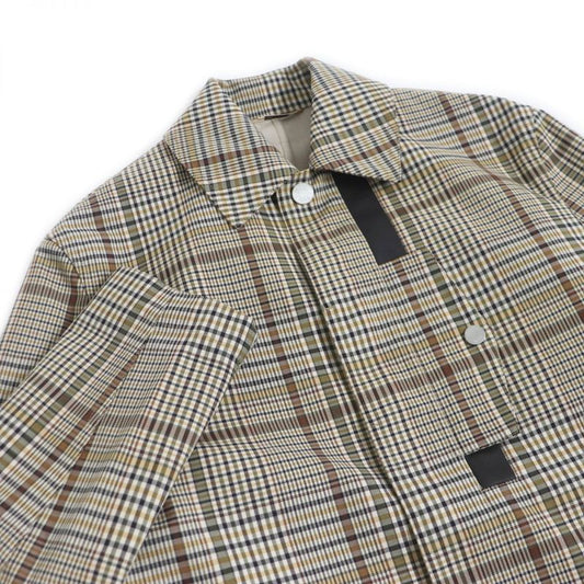 Hermes Brown Wool Stainless Steel Collar Coat With Checkered Pattern Serie