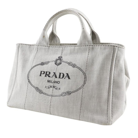 Prada Canapa Triangle Logo Plate 1bg439 Denim Light Gray Women's Handbag