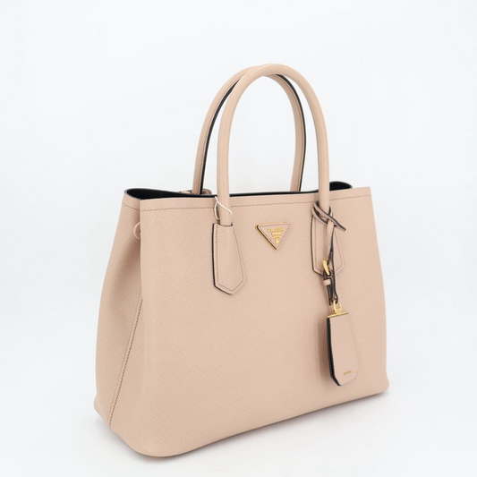 Prada Double Bag Saffiano Leather Triangle Logo Cameo Shopping Bag