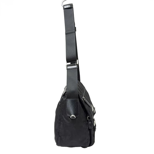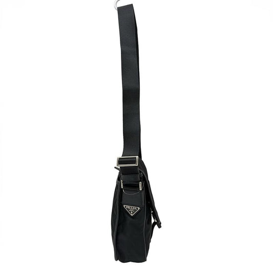 Prada Shoulder Bag Nylon Black Silver Hardware Men Women Unisex