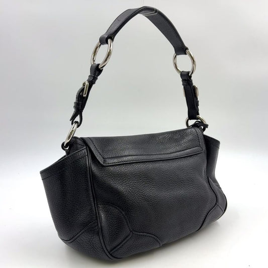 Prada Triangle Logo Plate One Shoulder Leather Black Handbag Silver