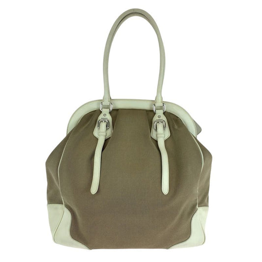 Prada Logo Jacquard Brown White Canvas Handbag Tote Shoulder Bag Women 506303