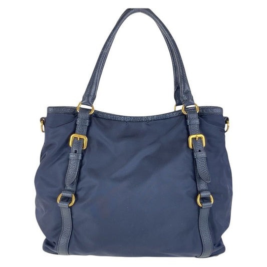 Prada Bijoux Canapa Triangle Logo Plate Navy Blue Denim Tote Bag Shoulder Bag