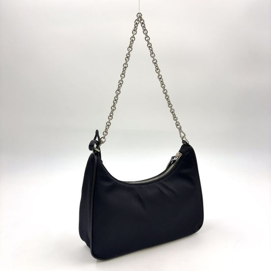 Prada Tessuto Triangle Logo Plate Silver Hardware Nylon Leather Shoulder Bag