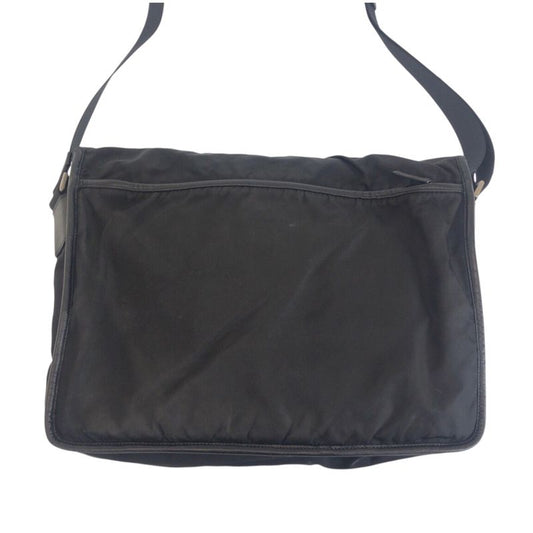 Prada Tessuto Triangle Logo Plate Black Silver Hardware Shoulder Bag Messenger