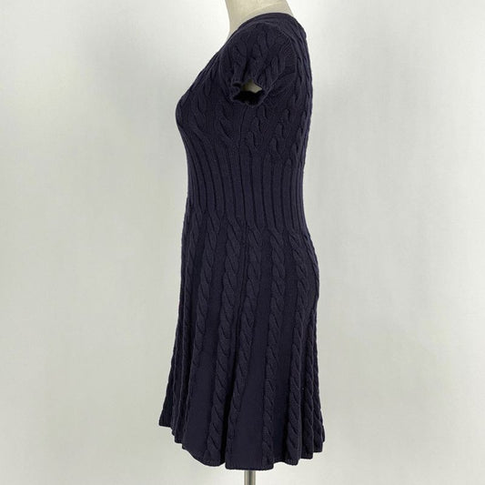 Prada Short Sleeve Knit Dress Cable Knit Flared Mini Dress Skirt Wool Navy Women