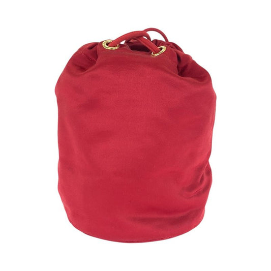 Prada Logo Embroidery Red Gold Hardware Satin Shoulder Bag Pouch Drawstring