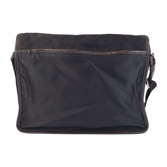 Prada Tessuto Triangle Logo Plate Black Silver Hardware Shoulder Bag Messenger