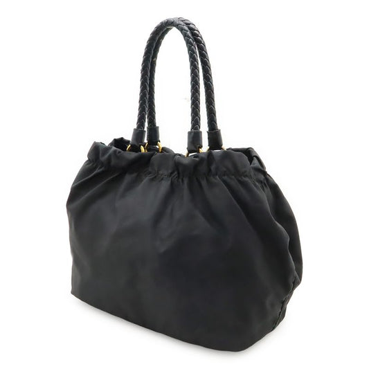 Prada Tessuto Gathered Ribbon Handbag Tote Bag Braided Handle Nylon NERO Black