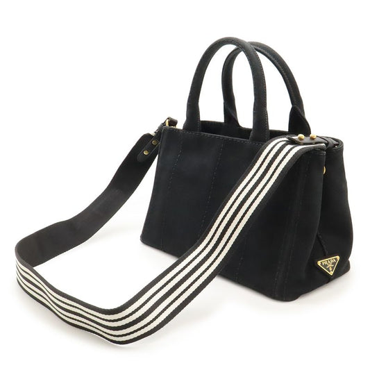 Prada Canapa Tote Bag 2WAY Shoulder Bag Striped Shoulder Canvas NERO Black