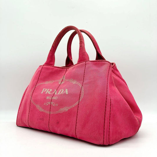 Prada Tote Bag Canapa Triangle Logo Plate Canvas Pink