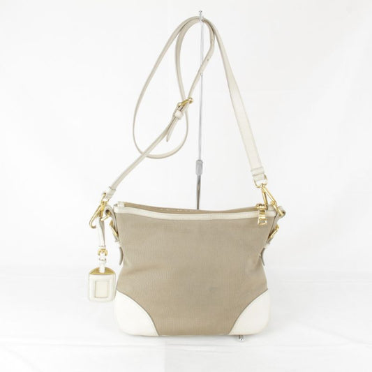 Prada Logo Jacquard Shoulder Bag Canvas Ladies