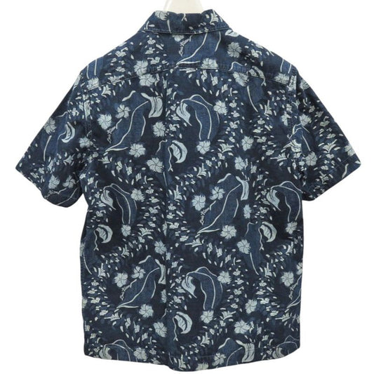 Louis Vuitton Aloha Shirt Denim L Size Floral Pattern Cotton Blue Short Sleeve