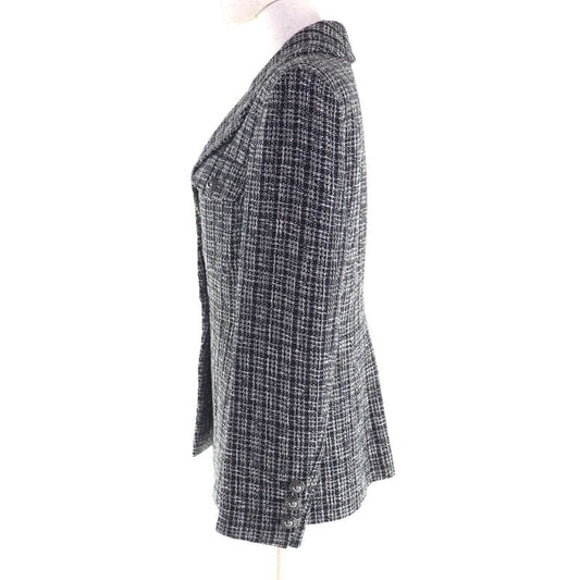CHANEL P60790 100% Silk Lined Lamé Tweed Single Jacket With Logo Buttons Black