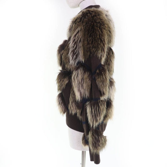 CHANEL P39161w04638 100% Cashmere Eco Fur Zip Up Knit Jacket Brownish 36 Made