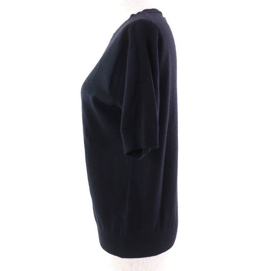 Prada 2023 P24d2q 100% Cashmere Crewneck Short Sleeve Knit Sweater Navy 36 Made