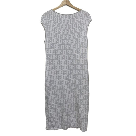 Fendi Dress Size 46 L Women - Light Gray And White Short Sleeves Long Knit