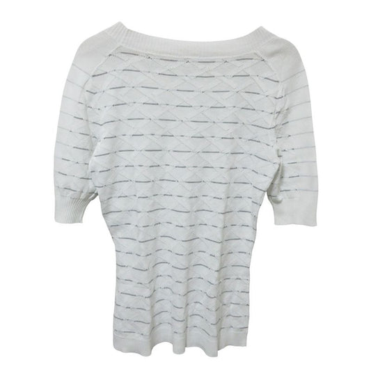 Cleaned Chanel Jacquard Check Half Sleeve Knit Sweater White Women's Preowned