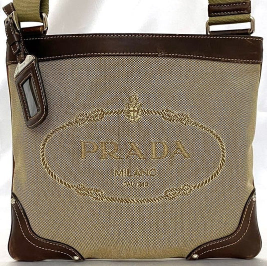 Prada Shoulder Bag Beige Brown Bt0536 Excellent Condition Jacquard