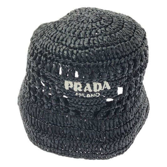 Prada Crockett Straw Bucket Hat - M - Black - Women's