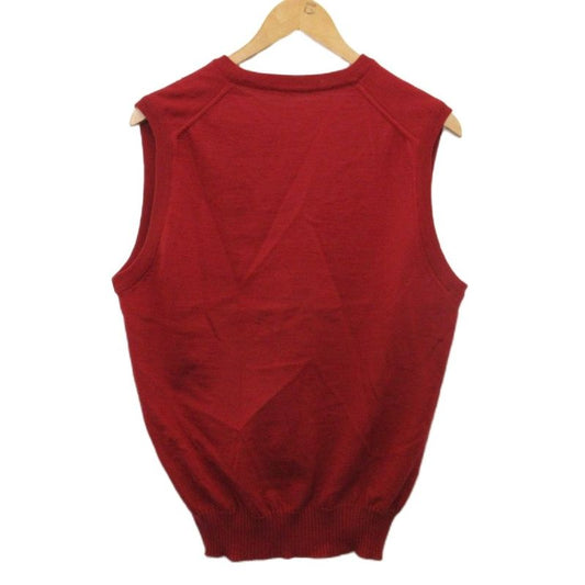 Christian DIOR Knitted Vest Sweater V-neck Logo Embroidery Red Approx M-L - MET2