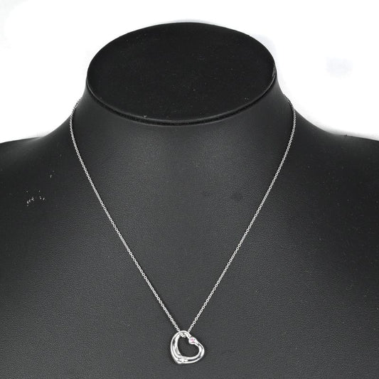 Tiffany & Co Open Heart 925 Silver And Pink Sapphire Ladies 3.5g Necklace