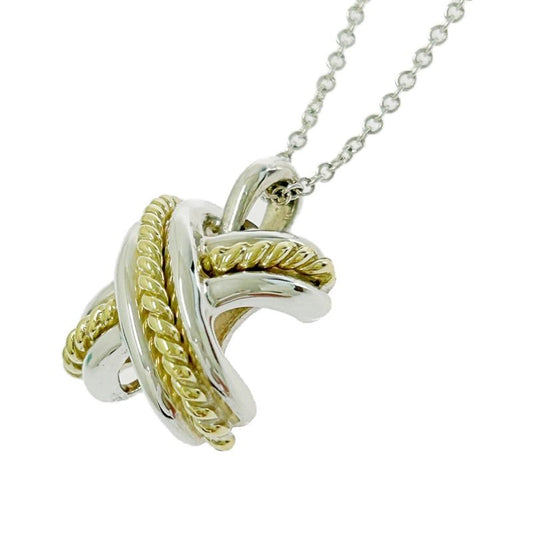 Tiffany & Co Silver Gold Signature Cross Necklace 4.9g 925 750 Engraved 499135