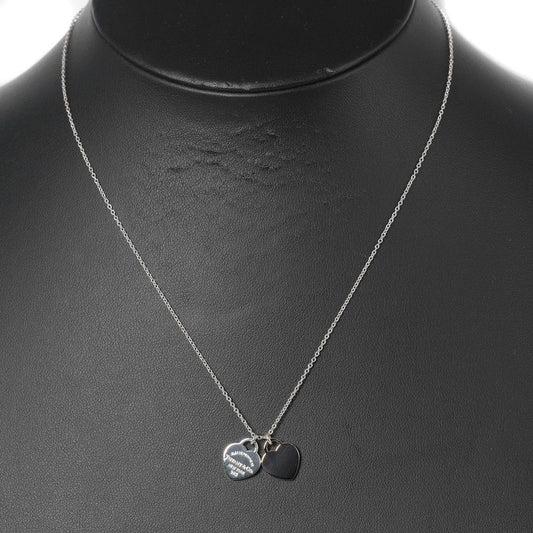 Tiffany & Co Return To Double Mini Heart Tag 925 Silver And Rubed Metal Ladies