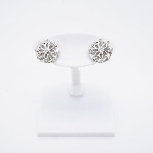 Tiffany & Co Earrings Daisy Flower Motif 18K White Gold White Togo Old Diamond